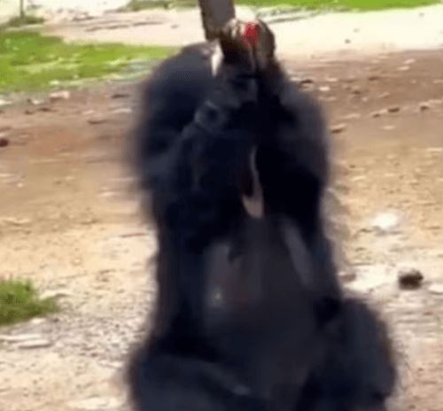 Чтобы стать популярным в социальных сетях, этот молодой житель деревни Нара (штат Чхаттисгарх, Индия) угостил дикого медведя безалкогольным напитком со вкусом манго. Поставив бутылку на землю перед зверем, мужчина отошёл, а мишка с удовольствием приложился к бутылке. И хотя медведю явно было вкусно, поведение жаждущего известности блогера все осудили.