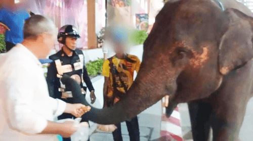 Жители Паттайи (Таиланд) и туристы были удивлены, когда увидели возле местного торгового центра настоящего живого слона.