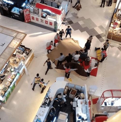 Женщина рассказала охраннику, что 21-летний незнакомец, стоявший позади неё, сфотографировал её под юбкой. Охранник попробовал задержать подозреваемого до приезда полиции, но тот бросился бежать, а после совершил шокирующий поступок. Отшвырнув в сторону рюкзак и смартфон, мужчина спрыгнул с четвертого этажа, рухнув на пол торгового центра и так и оставшись лежать в луже крови. Прыгун выжил, но находится в больнице в коме.