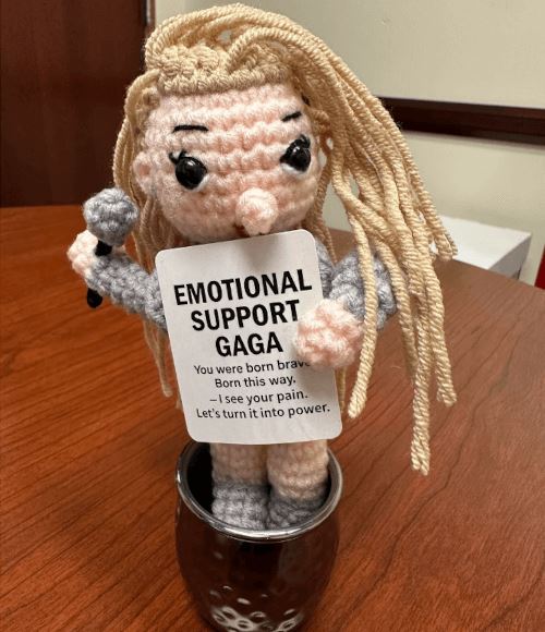 В соцсетях они увидели вязаную крючком куклу в виде певицы Леди Гага, и просто влюбились в эту вещицу. Тем более, что у куклы ещё и имелся плакатик с мотивационным текстом, так что сувенир служил не только для красоты, но и для эмоциональной поддержки. Жаль только, что, заказав куколку и прождав два месяца, наши герои получили нечто совсем не похожее на идеал. Кукла получилась неказистой и не особенно красивой.