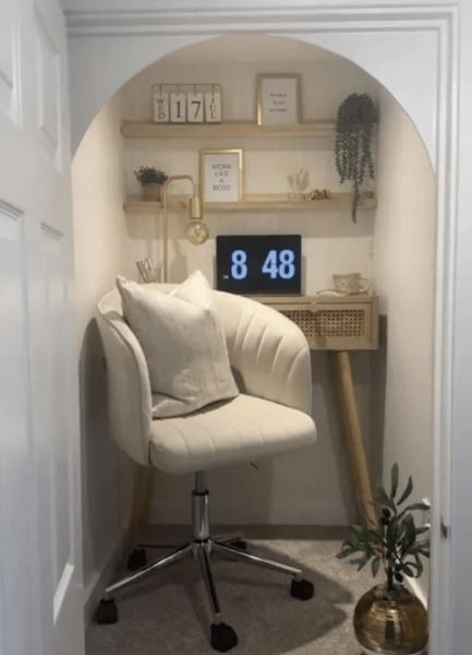 Однако женщина решилась на эксперимент и превратила кладовку (площадью меньше квадратного метра) в элегантный и функциональный рабочий кабинет. Потребовалось вынести из крошечной комнатки весь хлам, сделать там косметический ремонт и добавить минимум мебели (и даже кое-какие украшения), после чего можно было начинать хвастаться в соцсетях.